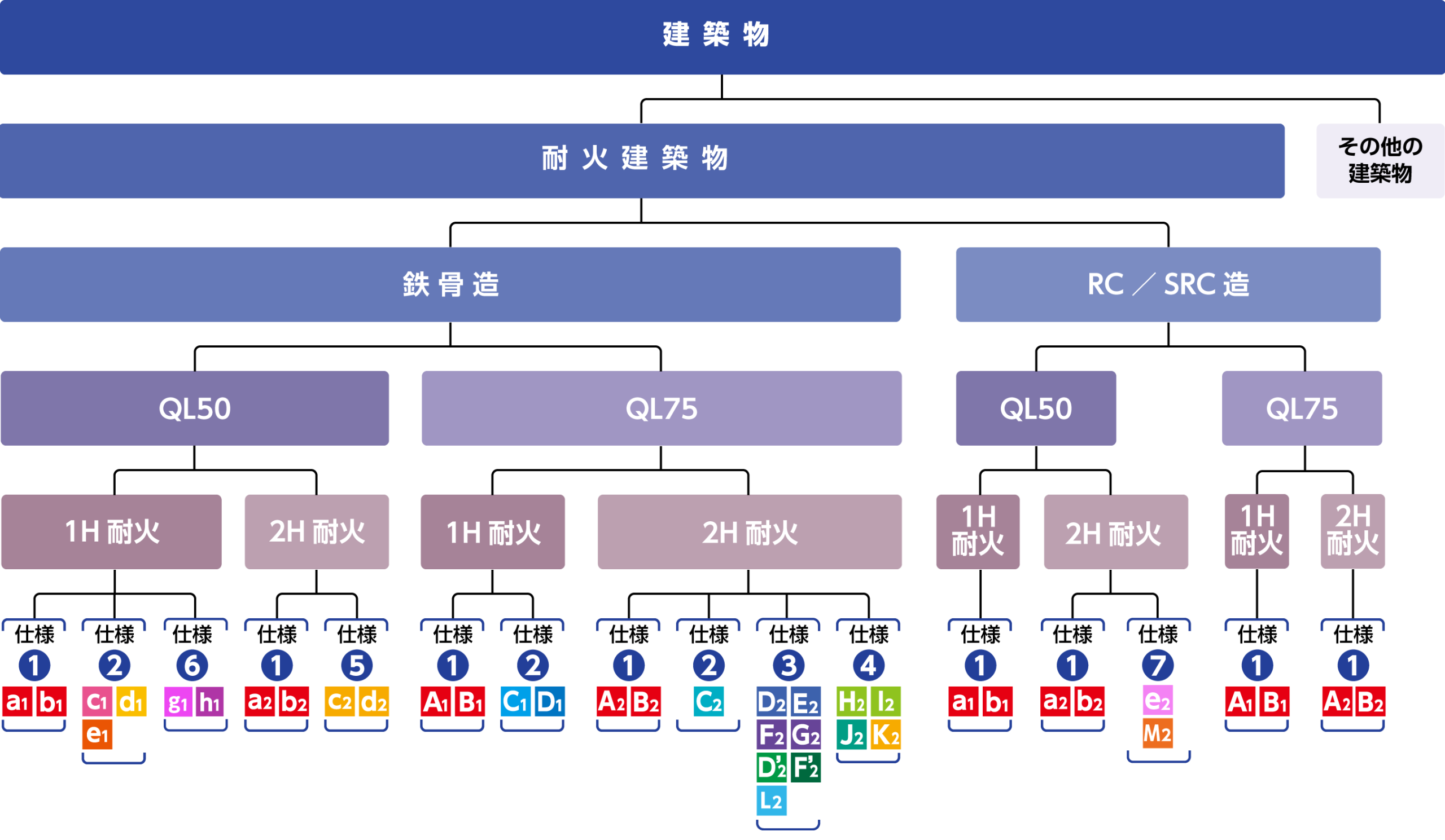 | ❷ | 耐火補強筋不要仕様 | QL50QL75 | 2H1H | S | 普通 | 不要 | 頭付きスタッドSPW打込鋲 |